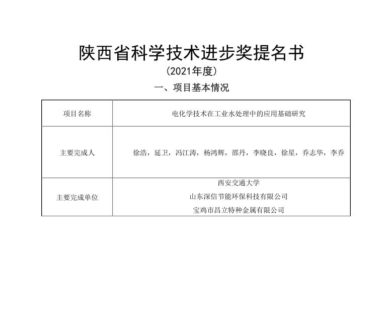 根據(jù)陜西省科技獎(jiǎng)勵(lì)有關(guān)要求,現(xiàn)將我司2020年度陜西省科技獎(jiǎng)合作申報(bào)項(xiàng)目 “電化學(xué)技術(shù)在工業(yè)水處理中的應(yīng)用基礎(chǔ)研究”信息在公司主頁(http://www.qajymy.com/)上公布,向全校征詢異議。