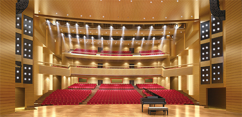 的室內劇場設計包括舞臺擴聲系統設計、舞臺燈光系統設計、舞臺顯示系統設計、舞臺機械系統設計、舞臺內通系統設計、舞臺監督系統設計、建筑聲學設計以及視線分析設計等多個系統的設計。通常舞臺的需求性是多樣的,不僅要滿足大型文藝演出和表演歌劇、音樂會等重要演出的需求,同時需兼顧大型會議、報告等需求。